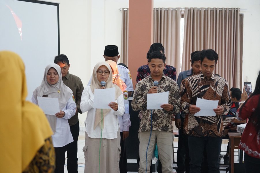 KOTA MUNGKID_Ketua KPU Kabupaten Magelang secara resmi mengukuhkan Relawan PDPB untuk 3 wilayah kecamatan masing-masing Kecamatan Grabag, Secang, dan Ngablak. Prosesi pengukuhan diawali dengan pembacaan Surat Keputusan, dilanjutkan dengan Ikrar Relawan PDPB, serta penyematan atribut secara simbolis kepada dua orang perwakilan relawan, Rabu (10/9/2025) di aula kantor Kecamatan Grabag.