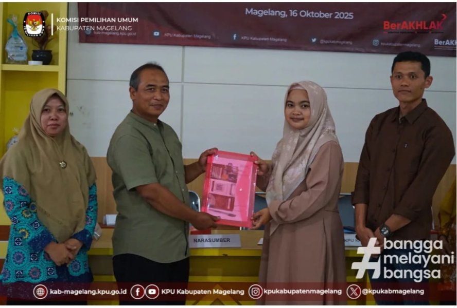 KOTA MUNGKID_Sebanyak 15 orang relawan Pemutakhiran Data Pemilih Berkelanjutan (PDPB) Wilayah Daerah Pemilihan (Dapil) Magelang 2 masing-masing Kecamatan Salaman, Tempuran, dan Kajoran resmi dikukuhkan KPU Kabupaten Magelang, Kamis (16/10/2025) di Balai Desa Ngadirejo, Kecamatan Salaman. Pengukuhan ini merupakan satu rangkaian dengan kegiatan Sosialisasi PKPU Nomor 1 Tahun 2025 dengan tema Kolaborasi untuk Data Pemilih Akurat Menuju Pemilu yang Berkualitas, yang terselenggara atas kerjasama Badan Kesatuan Bangsa dan Politik bersama KPU Kabupaten Magelang.