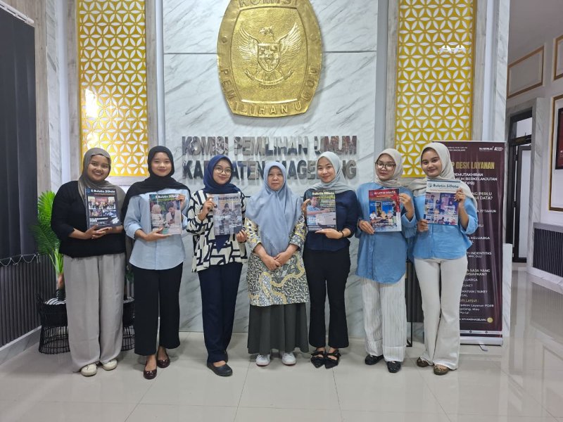 KOTA MUNGKID_ Inovasi E-Buletin SiData sebagai media literasi dan publikasi data pemilih yang diterbitkan secara KPU Kabupaten Magelang secara berkala rupanya menarik minat mahasiswa Program Studi Administrasi Negara Fakultas Ilmu Sosial dan Ilmu Politik (FISIP) Universitas Tidar (Untidar) yang tengah menjalani program magang selama satu bulan di Sekretariat KPU Kabupaten Magelang.