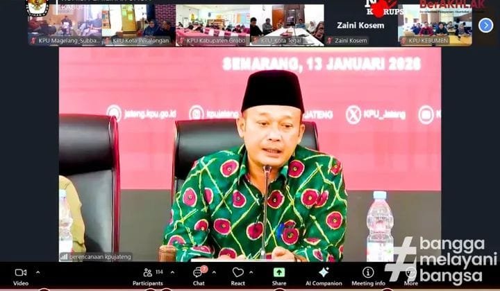 “Mengawali tahun ini, kami minta Satker KPU Kab/Kota di Jawa Tengah, untuk membuat perencanaan program 2026. Kami sampaikan jika sistem pemilu kedepan akan ada perubahan, proses elektoral kedepan akan lebih banyak dilakukan oleh KPU Kabupaten dan Kota. Salah satunya tentang perubahan daerah pemilihan dan kuota kursi. Soal pemilu langsung atau tidak, tidak usah ikut berpolemik,” pinta Handi saat membuka webinar Ngopi Asli – Bercanda via zoom dengan tema First Touch “Sentuhan Awal Mengapai Tujuan”, Selasa (13/01/2026), yang diikuti seluruh satuan kerja KPU kabupaten/kota se -Jawa Tengah secara daring termasuk KPU Kabupaten Magelang.