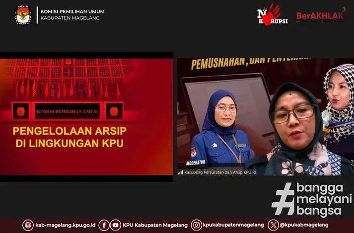 “Itulah kehidupan. Dimanapun kita berada, akan selalu membuat arsip. Demikian pula kita saat ini. Saat kita bekerja di KPU, maka kita juga akan selalu membuat arsip itu,” kata Tatit Dwiwiarti S, Kasubbag Persuratan dan Arsip Sekretariat Jenderal KPU RI, saat menjadi nara sumber kajian kepemiluan daring “Ngopi Asli” -Ngobrol Pinter Arsip dan Logistik KPU Provinsi Jawa Tengah yang diikuti 35 satuan kerja KPU kabupaten/kota se-Jawa Tengah termasuk KPU Kabupaten Magelang, Selasa (31/3/2026), melalui zoom meeting.
