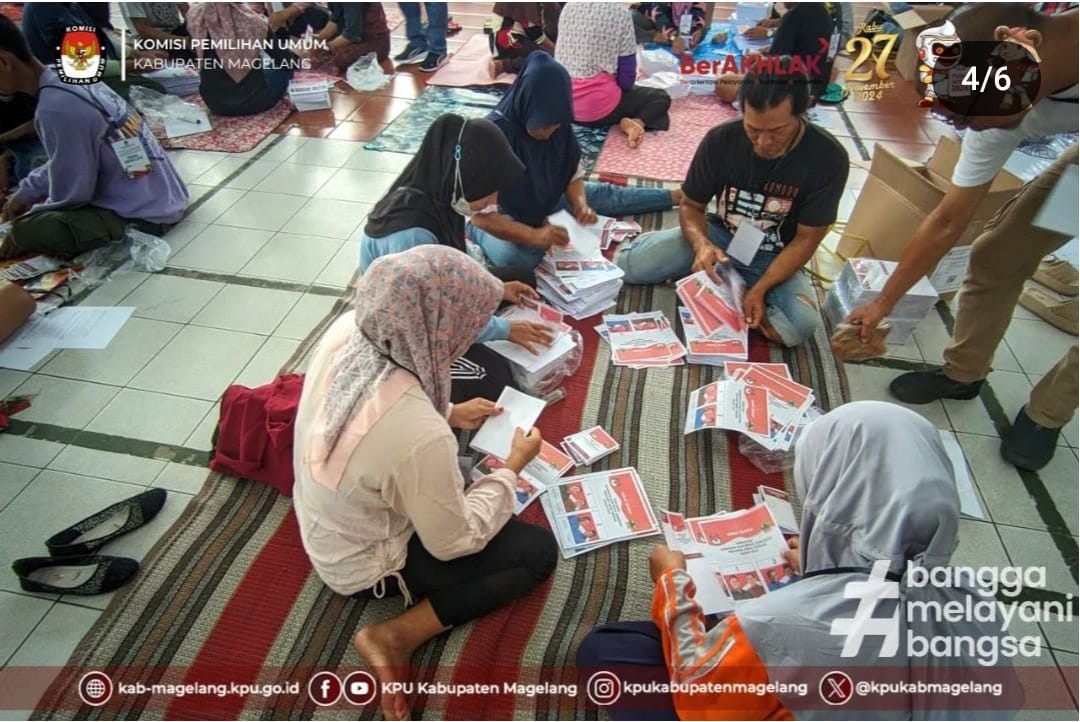 KOTA MUNGKID – Komisi Pemilihan Umum Kabupaten Magelang melakukan penyortiran dan pelipatan Surat Suara Pemilihan Gubernur (Pilgub) Jawa Tengah. Sebanyak 200 tenaga lipat dan sortir dilibatkan untuk proses ini. Proses sortir dan lipat surat suara dilaksanakan di GOR Gemilang, kompleks Setda Kabupaten Magelang selama dua hari , Jumat - Sabtu (1-2/11/2024). “Pelipatan dan sortir suarta suara Pilgub Jateng ini melibatkan sebanyak 200 tenaga lipat dan sortir. Sedangkan jumlah surat suara Pilgub Jateng sebanyak 1.040.808 lembar,’’ kata Ketua KPU Kabupaten Magelang, Ahmad Rofik. Tenaga lipat dan sortir surat suara tersebut, kata Rofik, berasal dari beberapa wilayah kecamatan di Kabupaten Magelang. Diantaranya, dari Kecamatan Mungkid, Mertoyudan, Candimulyo, Sawangan, Dukun, Salaman, Tempuran dan Kecamatan Borobudur. “Dari 200 tenaga itu, dibagi dalam 40 kelompok. Untuk setiap kelompok, terdiri atas lima orang. Setiap harinya, masing-masing kelompok ditargetkan dapat melipat dan menyortir sebanyak 12.000 lembar surat suara dengan upah Rp 135 per lembar per orang,” jelasnya. Sementara untuk surat suara Pilbup Kabupaten Magelang, akan mulai dilipat pada Selasa-Rabu (5-6/11) besok. Saat ini, surat suara Pilbup Kabupaten Magelang yang berjumlah 1. 042.808 lembar tersimpan di gudang KPU di Desa Taman Agung, Kecamatan Muntilan. Surat suara (SS) Pemilihan Bupati dan Wakil Bupati Magelang 2024 sampai di Gudang Tamanagung, Muntilan setelah dikirim dari pihak penyedia Percetakan CV Aria Duta Cibinong dan tiba di Magelang, Rabu (30/10) malam. "Jumlah surat suara yang diterima itu sudah termasuk surat suara bertanda khusus. Sebanyak 2.000 lembar sesuai regulasi, untuk antisipasi terjadinya Pemungutan Suara Ulang (PSU). Dan 2,5 persen surat suara Cadangan per TPS," imbuh Ahmad Rofik. (***/RED)