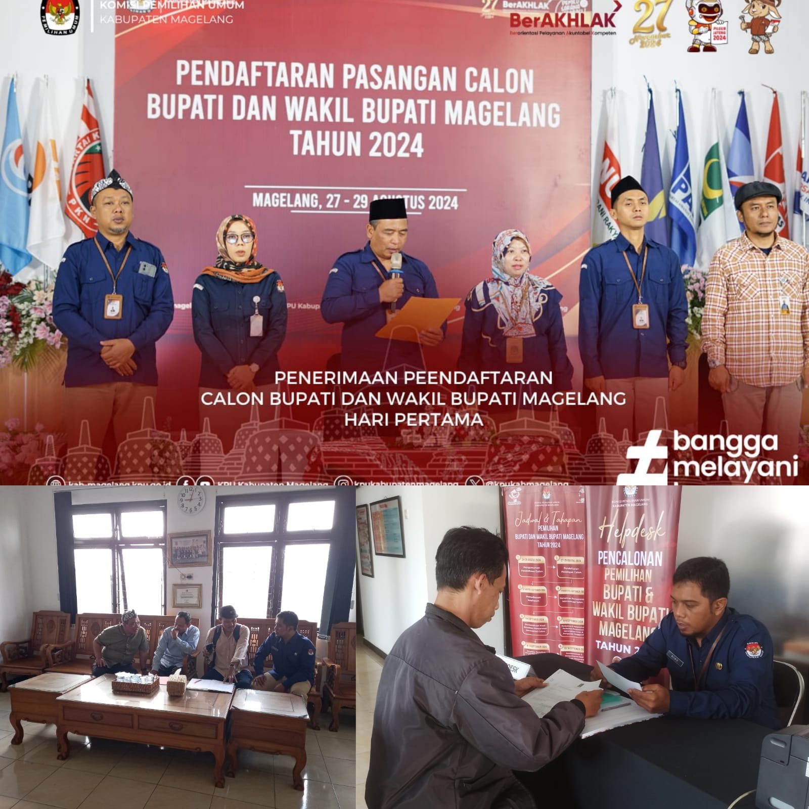 KOTA MUNGKID_ Hari pertama penerimaan pendaftaran pasangan calon Bupati dan Wakil Bupati Magelang Tahun 2024, Selasa (27/8/2024) masih belum ada bakal pasangan calon yang mendaftar. Namun ada yang menarik, pagi selepas seremoni pembukaan pendaftaran, pengurus dan petugas penghubung dari DPD PKS Kabupaten Magelang, Wimbo beserta tim, nampak hadir di Kantor KPU. Kedatangan mereka diterima Ketua KPU Ahmad Rofik didampingi Tri ahmad Sujiwo Kasubbag Teknis Penyelenggaraan, di ruang layanan Helpdesk Pencalonan Pilbup Magelang 2024. Kedatangan mereka dalam rangka konsultasi pembuatan akun pada aplikasi Silonkada, sebagai salah satu syarat dalam pendaftaran pasangan calon kepala daerah. Sore harinya sekitar pukul 15.00 WIB, petugas penghubung DPD PKB Magelang, M.Ismail juga datang ke layanan helpdesk pencalonan dalam rangka konsultasi pembuatan akun Silonkada. Sebagaimana diketahui, KPU menggunakan aplikasi berbasis teknologi informasi untuk mempermudah proses pendaftaran bagi pasangan calon kepala daerah yang akan maju berkontestasi dalam pesta demokrasi Pilkada Serentak 2024. Admin aplikasi Silonkada berasal dari partai politik pengusul pasangan calon, agar dapat mengakses aplikasi ini. Seluruh dokumen syarat pencalonan diwajibkan diunggah kedalam aplikasi Silonkada. Disisi lain, KPU Magelang juga telah menyiapkan venue menarik untuk penerimaan pendaftaran pasangan calon di aula kantor KPU, lengkap dengan ruang pers conference bagi pasangan calon untuk menemui awak media selepas menyelesaikan prosesi pendaftaran kepada KPU. “KPU juga menyiarkan secara langsung prosesi penerimaan pendaftaran pasangan calon melalui chanel You Tube KPU Magelang”, Terang Ahmad Rofik seusai menutup secara resmi hari pertama penerimaan pendaftaran pasangan calon pada Pilbup Magelang 2024. Esok hari, Rabu (28/8/2024) penerimaan pendaftaran pasangan calon kembali akan dibuka tepat pukul 08.00 WIB dan akan ditutup pukul 16.00.WIB.(***/RED)