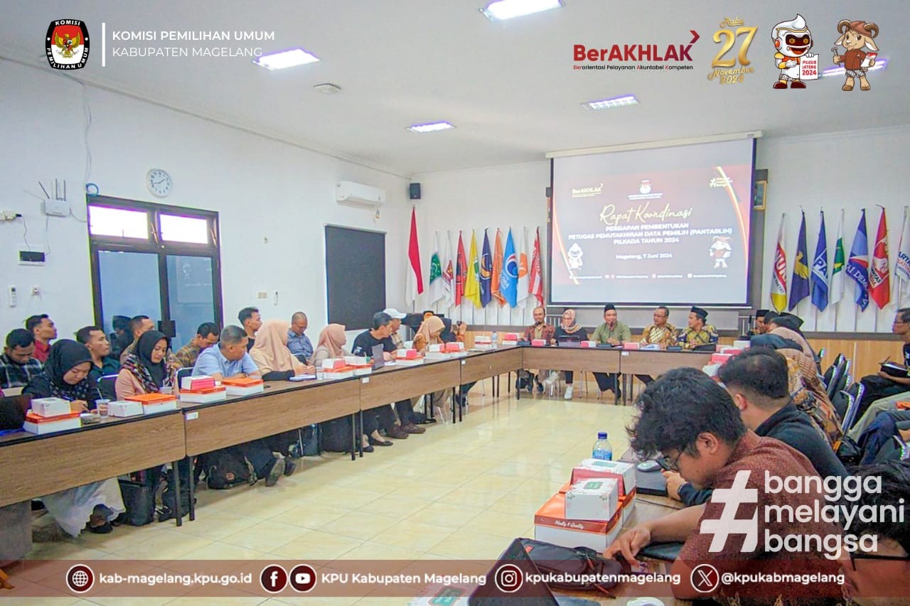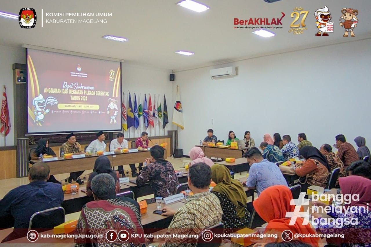 Kota Mungkid_ KPU Provinsi Jawa Tengah untuk kesekian kalinya mengadakan Rapat Sinkronisasi Anggaran dan Kegiatan Pilkada Serentak 2024 di Jawa Tengah bersama KPU Kabupaten/kota, Jumat (31/5/2024), di Aula kantor KPU Kabupaten Magelang. Rapat ini mengundang 6 KPU kabupaten Kota yakni Kabupaten Purworejo, Temanggung, Wonosobo. Kota Magelang, Kudus, dan Kudus. Peserta rapat adalah Ketua dan anggota KPU divisai Perencanaaan data dan informasi, sekretaris beserta kasub bag perencanan data dan informasi tingkat kabupaten/kota. Rapat dibuka secara resmi oleh Ketua KPU Provinsi Jawa Tengah Handi Tri Ujiono didampingi anggota KPU Basmar Periyanto Amron, Sekretaris KPU Provinsi Jawa Tengah Rudinal beserta pejabat struktural di Lingkungan Sekretariat KPU Jateng. Rudinal dalam paparan materinya menyampaikan bahwa rapat sinkronisasi untuk menyamakan persepsi antara KPU Provinsi dengan KPU Kabupaten/kota dalam penggunaan anggaran dan pelaksaanaan kegiatan Pilkada Serentak 2024 sesuai wilayahnya masing-masing. " Saya sampaikan kembali perihal tenaga pendukung kesekretariatan ditingkat PPK dan PPS tidak boleh direkrut selama Pilkada 2024, karena sudah dipenuhi dari APBN", Tegasnya. Menghjindari duplikasi penganggaran di tingkat satker karena masih ada anggaran Tahapan Pemilu yang masih melekat di satker juga turut ditekankan oleh Sekretaris KPU Jateng kepada KPU kabupaten kota yang hadir.(***/RED)