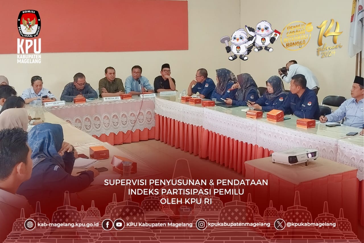Kota Mungkid_ Partisipasi pemilu tidak hanya bicara angka kehadiran pemilih di TPS. "Indeks partisipasi pemilu mencakup banyak kebutuhan, salah satunya hasil kinerja penyelenggara pemilu adhoc, yang keluarannya bisa dikonsumsi publik" Papar Engelbert Johannes Rohi, Ketua Tim Supervisi Indeks Partisipasi Pemilu (IPP) KPU RI, saat melaksanakan Supervisi Pendataan Indeks Partisipasi Pemilu di Sekretariat KPU Kabupaten Magelang, Kamis (12/10/2023), di ruang rapat . Di Kabupaten Magelang, Tim supervisi IPP menyoroti tingginya partisipasi masyarakat dalam seleksi badan adhoc. Terdata dalam Aplikasi Sistem Informasi Anggota KPU dan Badan Adhoc, (SIAKBA), aplikasi berbasis teknologi informasi yang digunakan KPU dalam proses pendaftaran seleksi anggota KPU dan Badan Adhoc, khusus di Kabupaten Magelang, tercatat jumlah pendaftar seleksi badan adhoc pemilu 2024 yang digelar akhir tahun 2022 lalu, ada 1. 460 pendaftar, dengan rincian Laki-laki sebanyak 739 dan perempuan 721. ‘Ribuan yang mendaftar ini juga salah satu bukti motivasi masyarakat dalam pemilu cukup bagus, meskipun motivasi mendaftar bisa beraneka ragam , mulai dari keinginan eksis bahkan paling tinggi ingin mewujudkan pemilu demokratis”, Seloroh M. Maskurudin Hafid, anggota Tim Supervisi IPP KPU RI saat memberikan pengantar supervisi di depan sejumlah anggota PPK dan PPS yang dihadirkan secara random di kantor KPU Kabupaten Magelang utuk keperluan supervisi IPP. Dalam forum supervise tersebut seluruh PPK dan PPS yang dihadirkan diminta memaparkan pernyataan dan pengalamannya mengikuti seleksi badan adhoc penyelenggara pemilu 2024. Seerti halnya yang diungkapkan Jesi Pramudiana, Anggota PPS Sukorejo, Mertoyudan. Perempuan belia luluisan SMK ini mengaku menjadi PPS adalah hal diluar nalar nya selama ini, karena dirinya selama ini hanya berkecimpung didunia laki-laki, dunia proyek bangunan. Namun setelah ia jalani, tugas-tugas PPS menjadi sebuah pengalaman baru yang tidak mengecewakan namun cukup membanggakan. Turut membersamai dalam kegiatan ini, Koordinator Divisi Sosdiklih Parmas KPU Provinsi Jateng, Akmaliyah, serta jajaran KPU Kab Magelang. Kegiatan supervisi ini dipandu langsung Ketua KPU Kabupaten Magelang, Afifuddin didampingi Dwi Endys Mindarwoko, ketua Divisi Sosdiklih Parmas dan SDM. (***/RED)