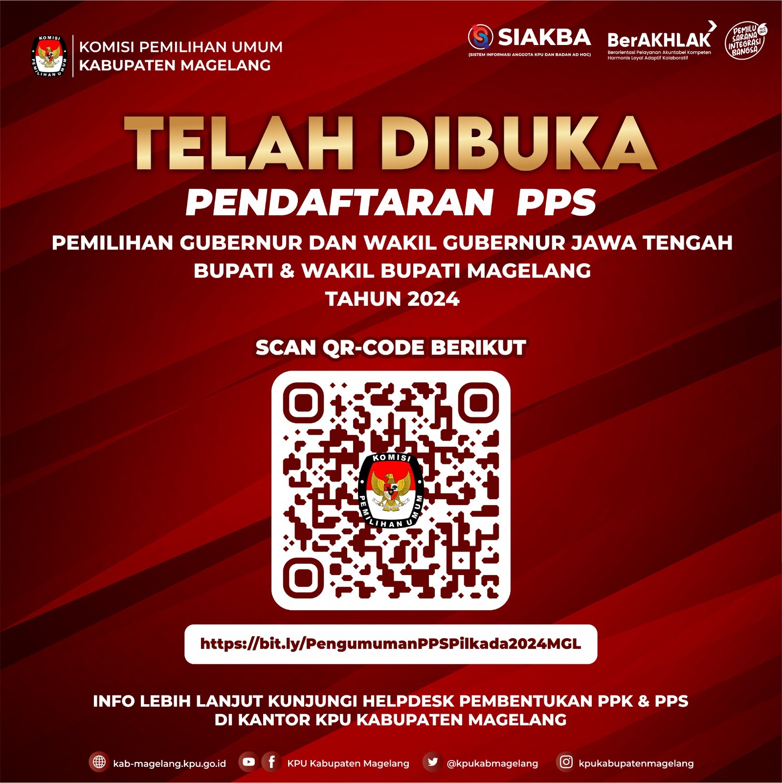 MAGELANG – KPU Kabupaten mulai menerima pendaftaran Panitia Pemungutan Suara (PPS) tingkat desa untuk Pemilihan Kepala Daerah (Pilkada) Tahun 2024. Pendaftaran dimulai pada tanggal 2 Mei dan akan berakhir pada 8 Mei 2024 melalui website: www.siakba.kpu.go.id. Sampai hari kedua pendaftaran, Sabtu (4/5/2024), ada 750 pendaftar tersebar di 372 desa/kelurahan. Sebelumnya, Komisi Pemilihan Umum (KPU) Kabupaten Magelang, telah menutup pendaftaran Badan Ad Hoc sebagai Panitia Pemilihan Kecamatan (PPK) untuk Pilkada 2024. Total ada 517 pendaftar. Selanjutnya, KPU akan mengumumkan yang lolos administrasi. Peserta yang lolos administrasi berhak mengikuti test tertulis dengan metode Computer Assisted Test (CAT) pada hari Selasa (7/5/2024) di Pusat Komputer Universitas Muhammadiyan Magelang (Unimma), yang berada di Gedung Fakultas Hukum (lantai 3), Kampus 2 Mertoyudan. “Insya Alloh semua desa/kelurahan terpenuhi kebutuhan minimal pendaftarannya yaitu 2 kali 3 orang atau 6 orang. Kami selalu berkoordinasi dengan Pemkab Magelang dan jajaran serta mensosialisasikan ini kepada masyarakat baik secara online, iklan layanan Masyarakat di radio maupun sosialisai tatap muka (secara langsung)” kata Ketua KPU Kabupaten Magelang, Ahmad Rofik. Dia juga menambahkan untuk memudahkan pelayanan, berkas lamaran selain bisa dikumpulkan melalui Helpdesk di Kantor KPU Magelang; mulai tanggal 16 Mei 2024 (setelah PPK terbentuk) sampai sebelum tes tertulis PPS, berkas lamaran bisa disampaikan di Kantor PPK di masing-masing kecamatan. Namun baik yang mengumpulkan di Kantor KPU maupun di Kantor PPK harus mengunggah terlebih dahulu melalui website: www.siakba.kpu.go.id. Dalam kesempatan yang sama, Anggota KPU Kabupaten Magelang, Divisi Sosialisasi Pendidikan Pemilih, Partisipasi Masyarakat dan SDM, Yohanes Bagyo Harsono, mengatakan syarat mendaftar PPS, sama seperti syarat pendaftaran PPK. Diantaranya, warga negara Indonesia ditunjukkan dengan KTP, berusia 17 tahun, mempunyai integritas, pribadi yang kuat, jujur dan adil. Kemudian, mampu secara jasmani, rohani dan bebas dari penyalahgunaan narkotika, berpendidikan paling rendah SLTA atau sederajat, tidak pernah dipidana penjara berdasarkan putusan pengadilan yang telah memperoleh kekuatan hukum tetap dengan ancaman pidana penjara 5 (lima) tahun atau lebih. “Satu lagi, tidak menjadi anggota partai politik, tim sukses maupun tim kampaye yang dinyatakan dengan surat pernyataan. Format surat pernyataannya, dapat diunduh di aplikasi siakba,” imbuhnya. (***/RED)