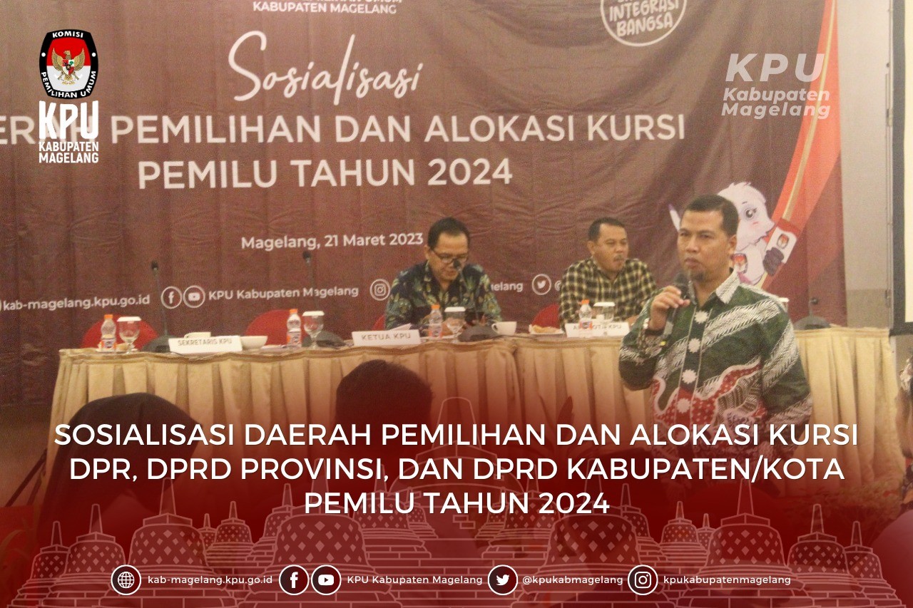 Kota Mungkid_ Hari kesebelas Pengajuan Bakal Calon Anggota DPRD Kabupaten Magelang pada Pemilu 2024, KPU Kabupaten Magelang menerima kedatangan dua partai peserta Pemilu 2024, Partai Nasdem dan PDI-Perjuangan , yang hadir mengajukan bakal calon legislatornya pada hari yang sama meski pada pada waktu yang berbeda, Kamis (11/5/2023), di Kantor KPU setempat. Partai Nasdem datang mengajukan bakal calon anggota legislatornya tepat pukul 11.00. WIB, sesuai surat pemberitahuan Partai Nasdem yang disampaikan kepada KPU Kabupaten Magelang beberapa hari sebelumnya. Partai besutan Surya Paloh ini datang dipimpin langsung oleh Ketua DPD Nasdem Kabupaten Magelang, Pipik Dewi Susana, didampingi jajaran pengurus beserta petugas penghubung dan beberapa bakal calon legislatornya. Mereka kompak mengenakan busana adat Jawa. Berbusana serupa rombongan DPC PDI-Perjuangan Kabupaten Magelang juga hadir di Kantor KPU Kabupaten Magelang untuk mengajukan bakal calonnya, tepat pukul 15.00.WIB. Rombongan partai berlambang banteng mencereng ini datang mengendarai andong (dokar) dari Rumah Dinas Ketua DPRD Kabupaten Magelang menuju Kantor KPU Kabupaten Magelang, dipimpin langsung Ketua DPC, Saryan Adiyanto yang juga Ketua DPC PDI-P Kabupaten Magelang. Baik Partai Nasdem maupun Pdi-Perjuangan mengajukan 50 bakal calon anggota DPRD Kabupaten Magelang pada Pemilu 2024 . Para bacaleg nantinya akan akan berkompetisi di 6 daerah pemilihan. (***/RED) Kota Mungkid_ Hari kesebelas Pengajuan Bakal Calon Anggota DPRD Kabupaten Magelang pada Pemilu 2024, KPU Kabupaten Magelang menerima kedatangan dua partai peserta Pemilu 2024, Partai Nasdem dan PDI-Perjuangan , yang hadir mengajukan bakal calon legislatornya pada hari yang sama meski pada pada waktu yang berbeda, Kamis (11/5/2023), di Kantor KPU setempat. Partai Nasdem datang mengajukan bakal calon anggota legislatornya tepat pukul 11.00. WIB, sesuai surat pemberitahuan Partai Nasdem yang disampaikan kepada KPU Kabupaten Magelang beberapa hari sebelumnya. Partai besutan Surya Paloh ini datang dipimpin langsung oleh Ketua DPD Nasdem Kabupaten Magelang, Pipik Dewi Susana, didampingi jajaran pengurus beserta petugas penghubung dan beberapa bakal calon legislatornya. Mereka kompak mengenakan busana adat Jawa. Berbusana serupa rombongan DPC PDI-Perjuangan Kabupaten Magelang juga hadir di Kantor KPU Kabupaten Magelang untuk mengajukan bakal calonnya, tepat pukul 15.00.WIB. Rombongan partai berlambang banteng mencereng ini datang mengendarai andong (dokar) dari Rumah Dinas Ketua DPRD Kabupaten Magelang menuju Kantor KPU Kabupaten Magelang, dipimpin langsung Ketua DPC, Saryan Adiyanto yang juga Ketua DPC PDI-P Kabupaten Magelang. Baik Partai Nasdem maupun Pdi-Perjuangan mengajukan 50 bakal calon anggota DPRD Kabupaten Magelang pada Pemilu 2024 . Para bacaleg nantinya akan akan berkompetisi di 6 daerah pemilihan. (***/RED)