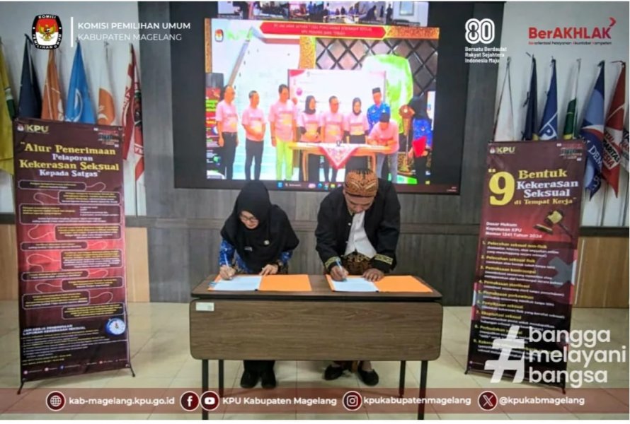 KOTA MUNGKID - KPU RI mengapresi pembentukan satuan tugas pencegahan kekerasan seksual di KPU Propinsi Jawa Tengah, yang dilaunching Ahad (17/8/2025) usai pelaksanaan Upacara Peringatan HUT ke-80 Kemerdekaan RI. Launching yang digelar secara hibrid ini, dihadiri Anggota KPU RI, Yulianto Sudrajat Kepala Dinas Perlindungan Perempuan dan Anak, Pengendalian Penduduk dan KB Propinsi Jawa Tengah, sejumlah aktivis perempuan di kantor KPU Jawa Tengah serta 35 satuan kerja KPU kabupaten/kota di Jawa Tengah yang mengikuti secara daring melalui zoom meeting. "Kami presiasi penuh pembentukan satgas ini. KPU RI berkomitmen penuh terkait pencegahan kekersan seksual ini. Kami berharap ini tidak hanya sekedar formalitas, tapi ditindaklanjuti, disosialisasikan kepada segenap pegawai dan jajaran dilingkungan KPU Jawa Tengah," kata Yulianto Sudrajat, dalam pengarahannya tadi. Disampaikan, jika rumah kedua kita adalah kantor. Namun saat pemilu kemarin, justru kebalik. Rumah utama kita kemarin adalah kantor, terutama saat tahapan pemilu. Maka komitmen ini untuk menjaga dan melindungi tindakan-tindakan yang mengarah pada pelecehan fisik maupun non fisik. "KPU tidak hanya membentuk satgas, tapi juga menjadi rumah yang ramah terhadap masyarakat dan difabel. Ini juga bentuk representasi dari KPU melayani. Karena itu, KPU harus bisa secara maksimal menjadi pelayan kepada siapa saja dengan baik. Semoga yang sekarang sudah baik, dipertahankan dan ditingkatkan lagi kedepan," pintanya. Ketua KPU Provinsi Jawa Tengah, Handi Tri Ujiono dalam sambutannya mengatakan, ini adalah tindaklanjut keputusan KPU RI Nomor 1341. "Hari ini juga kami resmikan ruang unit pelayanan konseling korban kekerasan perempuan. Hal ini bagian dari langkah-langkah dilembaga kita untuk pencegahan kekerasan seksual. Ancaman itu muncul ketika ada niat, effort satgas utk mengenolkan hal itu. Suasana yang tercipta dilingkungan kerja, sehingga kalau itu dinolkan, maka lingkungan kerja kita jadi lebih nyaman maka pekerjaan kita menjadi lebih maksimal," katanya. Dalam kesempatan itu, Ketua Satgas Pencegahan Kekerasan Seksual KPU Jawa Tengah, Mey Nurlela mengharapkan KPU Kabupaten/Kota menjadi jaring informasi tentang pencegahan kekerasan seksual. "Kita berharap setelah ini teman-teman KPU Kabupaten/Kota menginformasikan bila terjadi kekerasan seksual dilingkungan kerjanya. Namun kita berharap hal itu tidak terjadi," pintanya. Jaring Informasi Pencegahan Kekerasan Seksual ditingkat KPU kabupaten/kota juga turut dikukuhkan pada acara launcing tersebut. Untuk KPU Kabupaten Magelang terdiri Ketua Divisi Sosdiklih, Parmas dan SDM Yohanes Bagyo Harsono, Ketua Divisi Hukum dan Pengawasan Anas Khoirudin, Sekretaris KPU Ira Wahyu Catur K, dan Plt Kasubag Hukum dan SDM Yunianto Setiawan... (***/RED)
