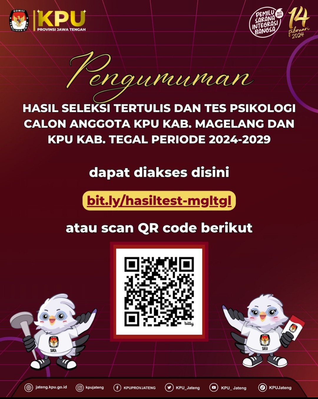 Kota Mungkid_Tim Seleksi Calon Anggota KPU Kab Magelang dan Tegal Provinsi Jateng, Sabtu (12/11/2023) mengumumkan hasil tertulis dan psikologi. Klik Pengumuman.